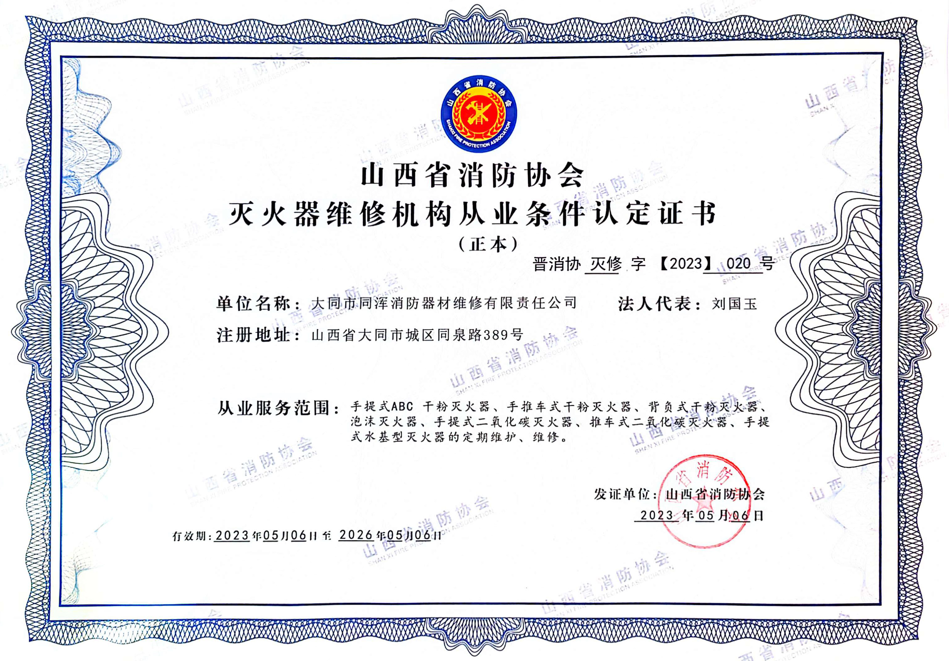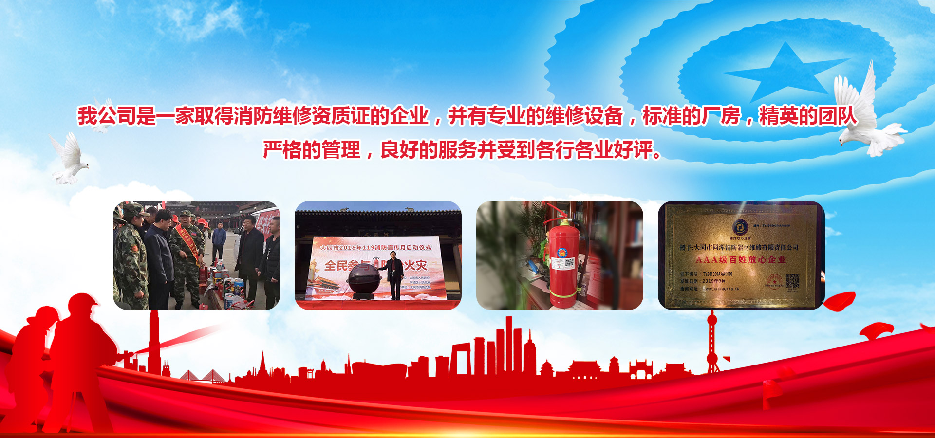 大同市同渾消防器材維修有限責任公司,位于大同市同泉路389號,始建于2000年,是公安部消防局定點銷售和維修的企業,歷經多年的創(chuàng)建、發(fā)展和拼搏,現有多家消防器材廠商供應我公司,并有現代化維修設備,標準的廠房,嚴格的管理,優(yōu)良的設備,良好的服務并受到各行各業的好評。總經理劉國玉嚴格管理,嚴格要求,精益求精,認真負責,帶領團隊熱烈歡迎各界朋友顧客光臨。